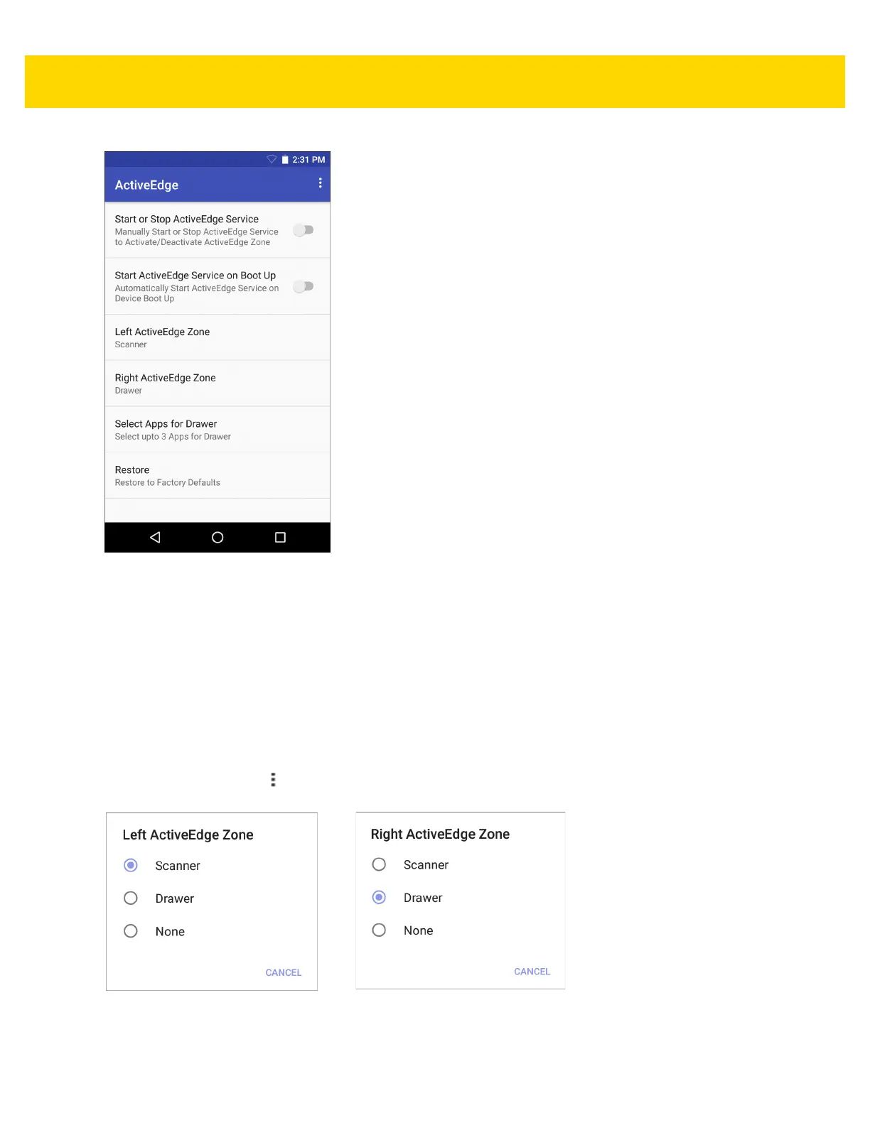 • Right ActiveEdge Zone - Configure the right ActiveEdge Zone to Scanner, Drawer, or None.