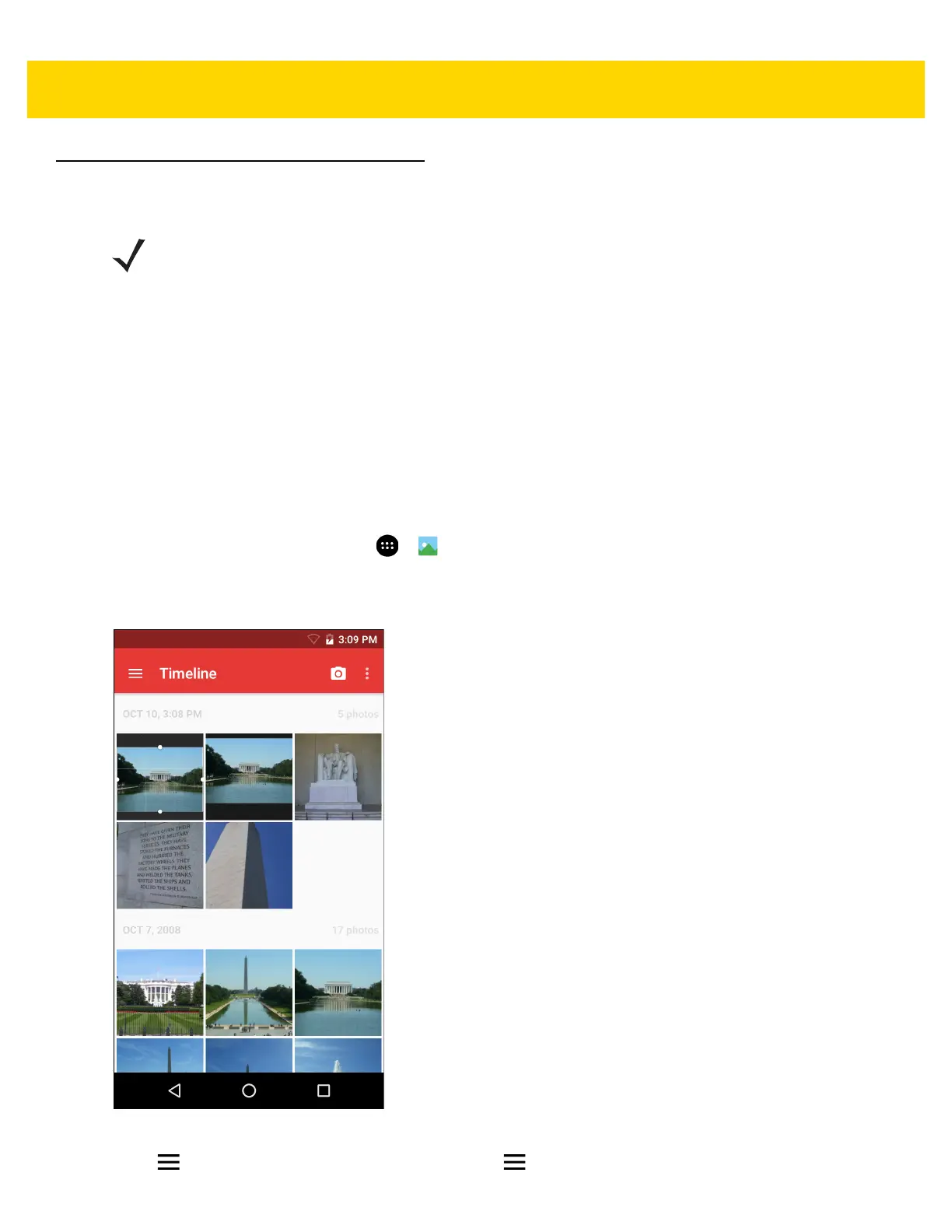To open the Gallery application, touch > or in the camera application touch the thumbnail image at the