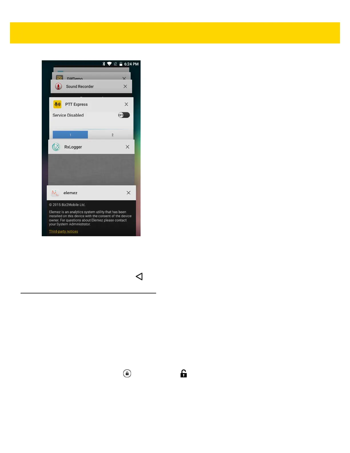 Use the Lock screen to protect access to data on the TC70x/TC75x. Some email account require locking the