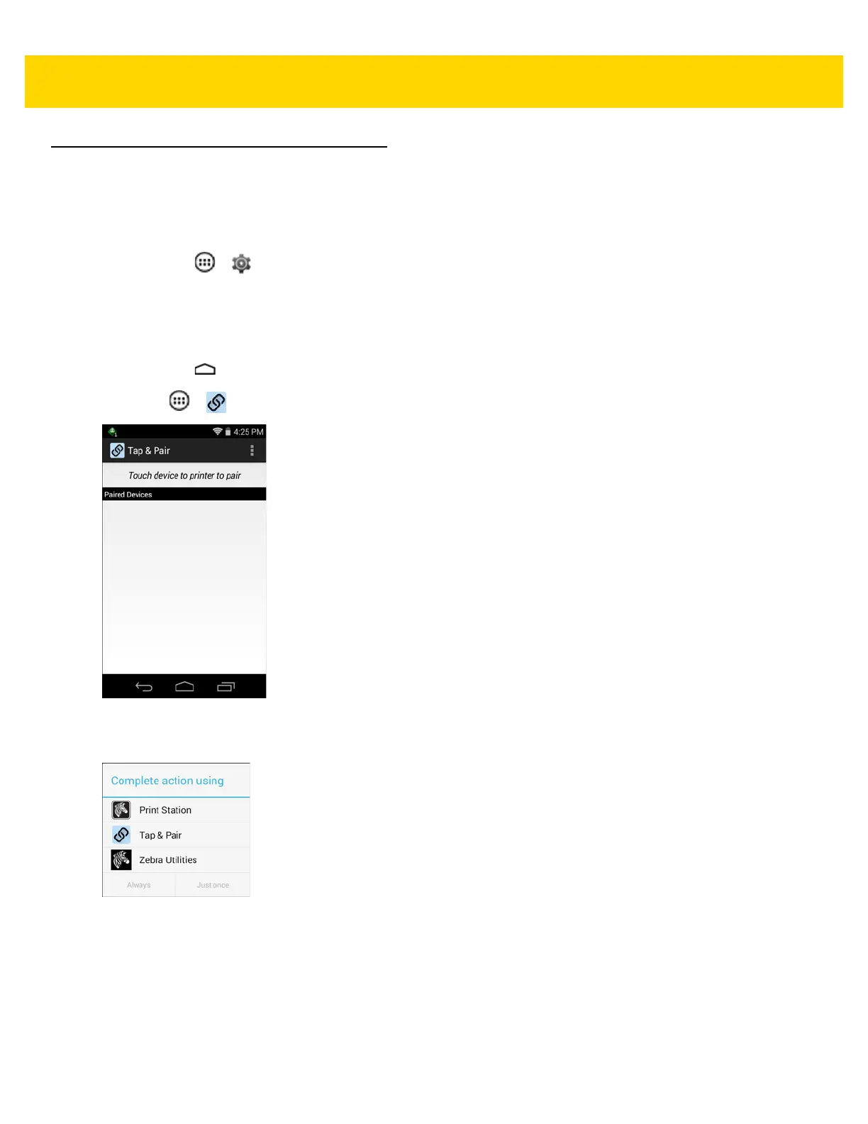 Use the Tap & Pair application to easily connect to a Zebra printer.