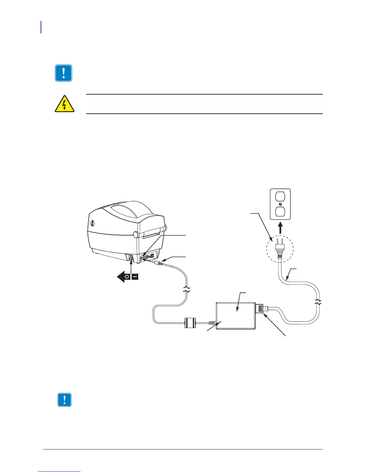 4. Insert the power supply’s power connector into the printer’s power receptacle.