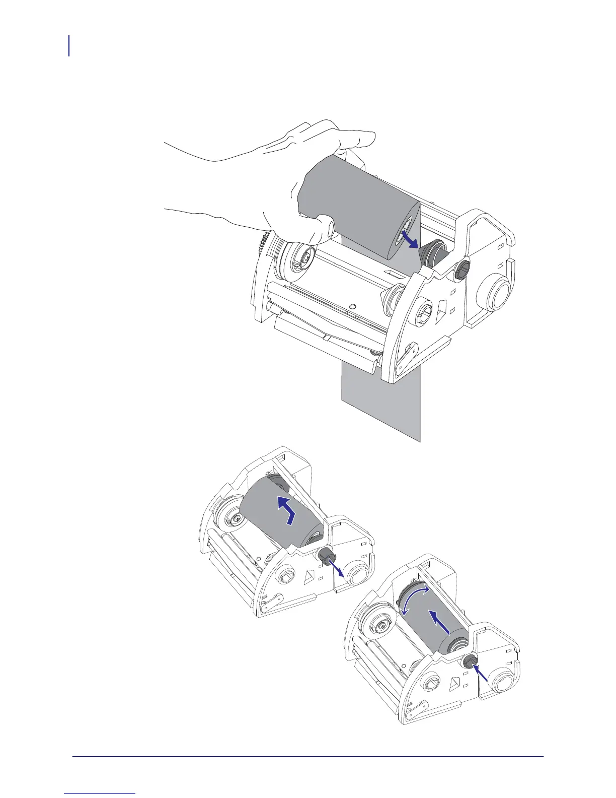 2. First slide the ribbon roll onto the right hand supply spindle. Push the right spindle in and