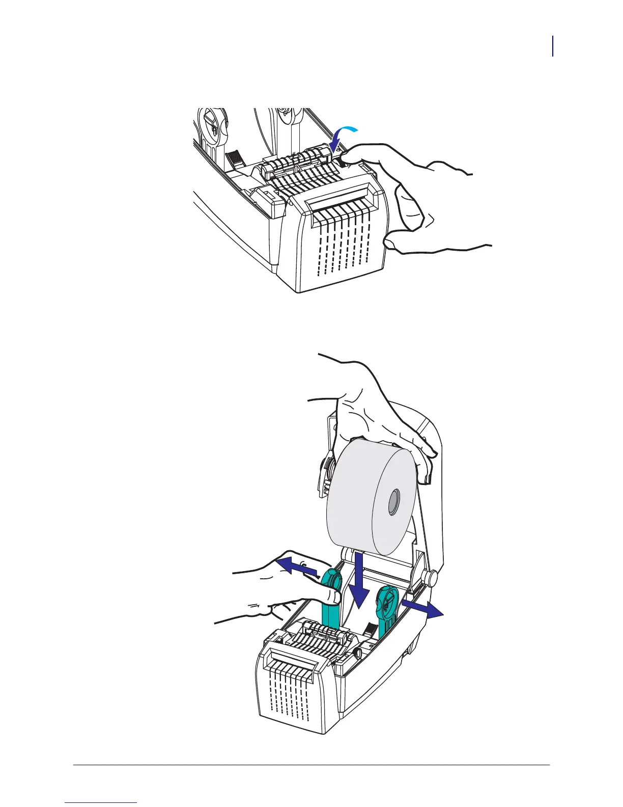4. Open the media roll holders. Pull the media guides open with your free hand and place the