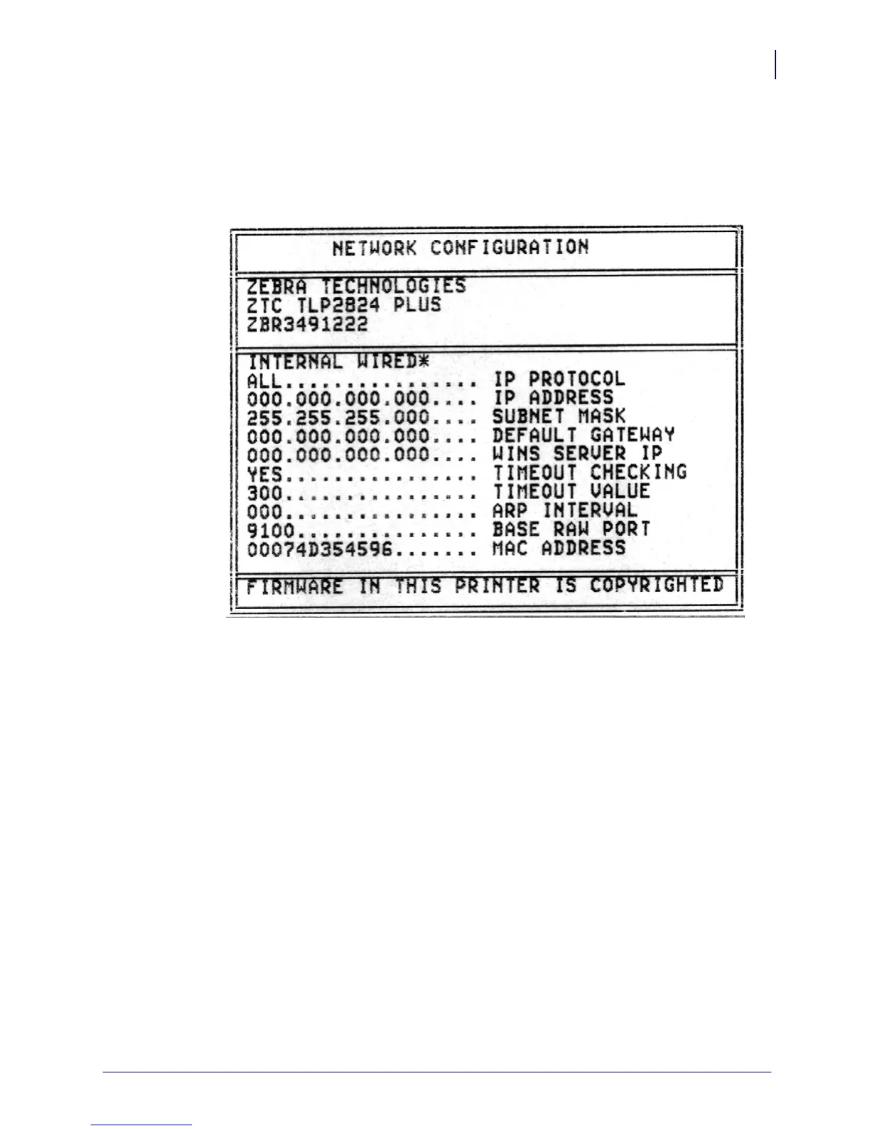 The regular printout of the configuration status label has some of the printer’s network settings