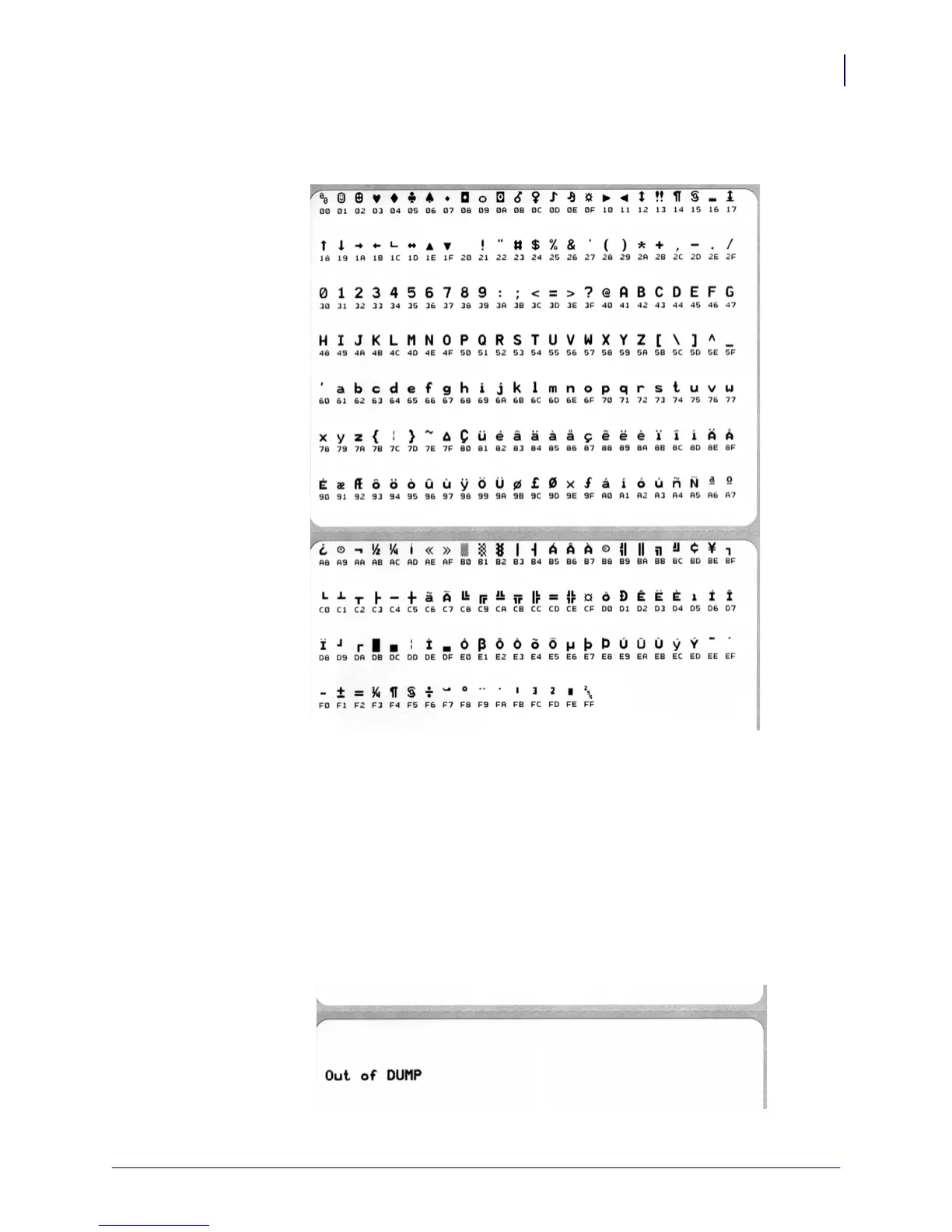 takes to clear the printer’s command buffer and print ‘Out of DUMP’ on the label.