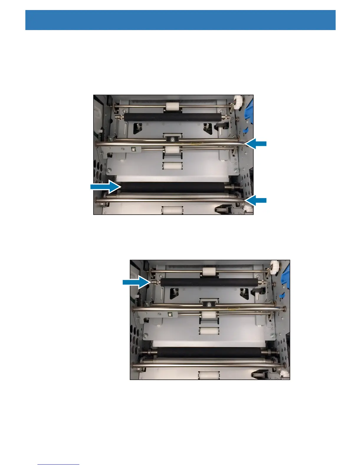 Step 3. Use a lint-free cloth and isopropyl or ethyl alcohol to clean the platen roller and the ribbon tension