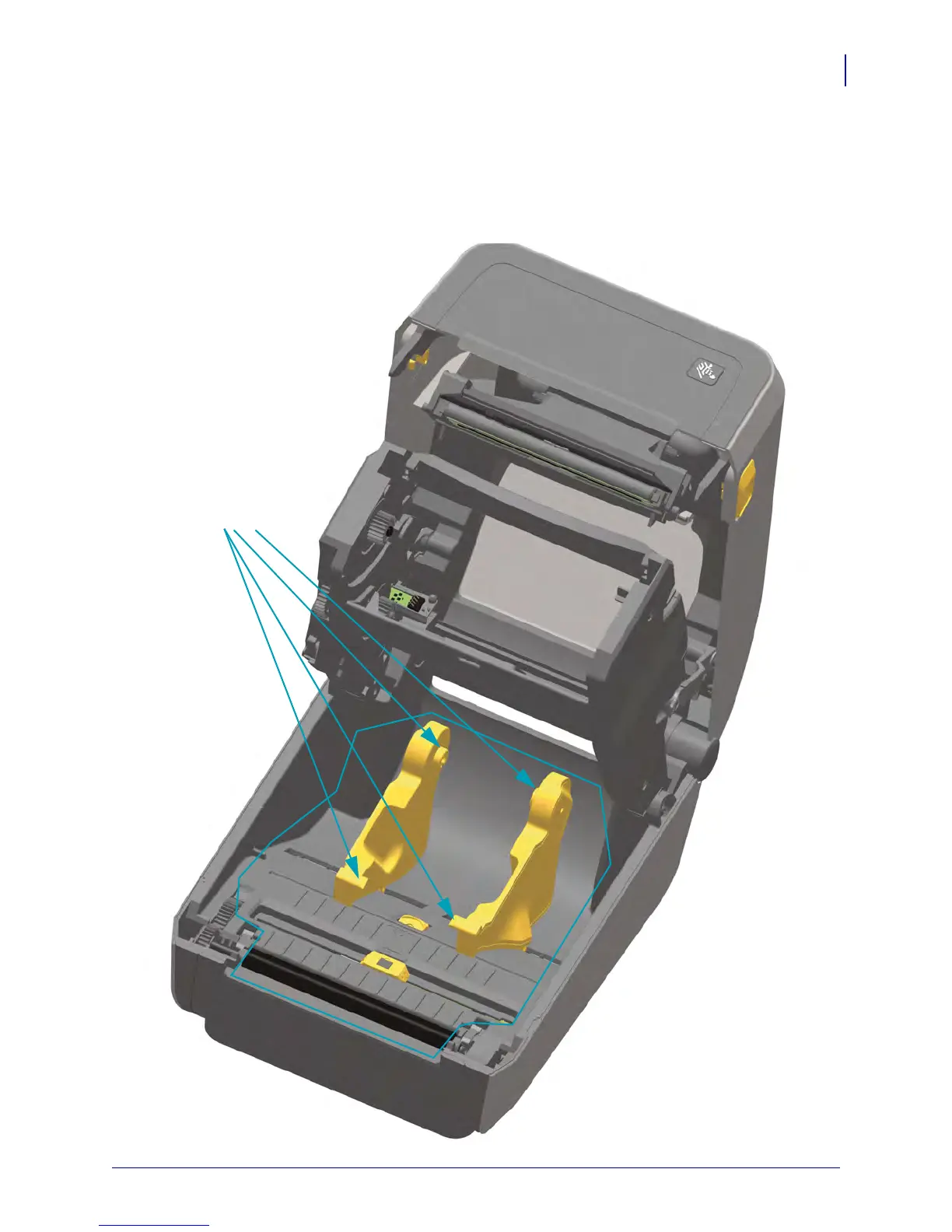 4. Wipe the inside surfaces of the roll holders and the underside of the media guides with a