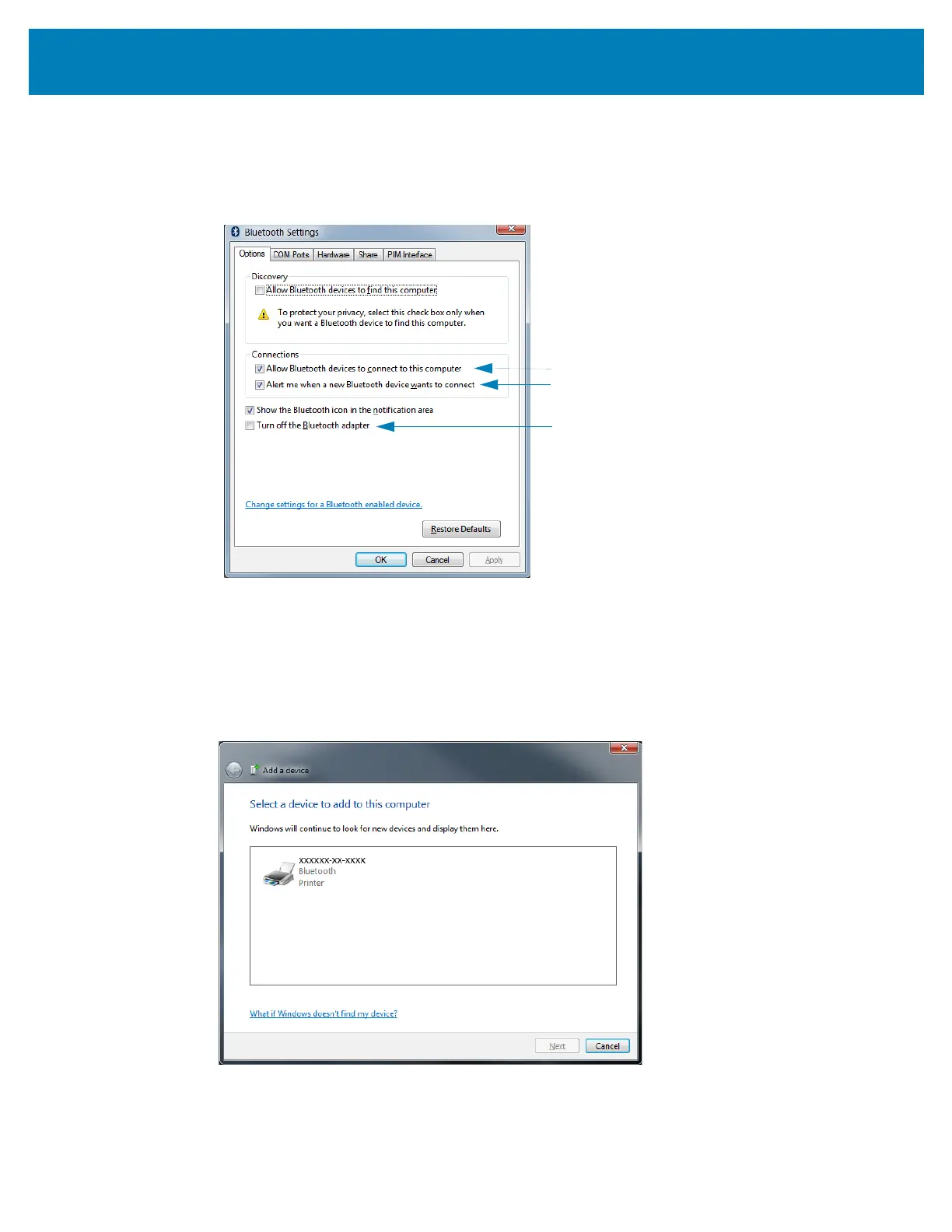 “Add a device’ windows will populate with Bluetooth devices near you.