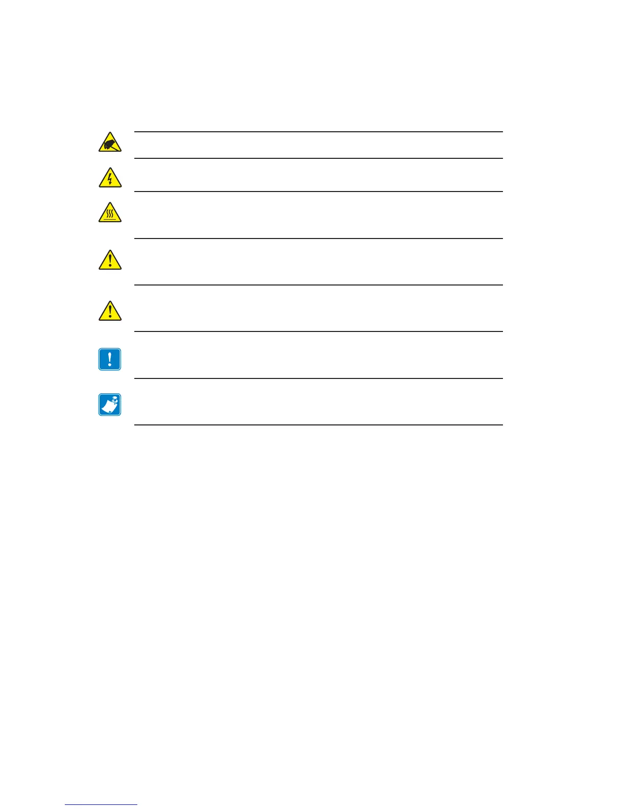 Caution • Warns you of the potential for electrostatic discharge.