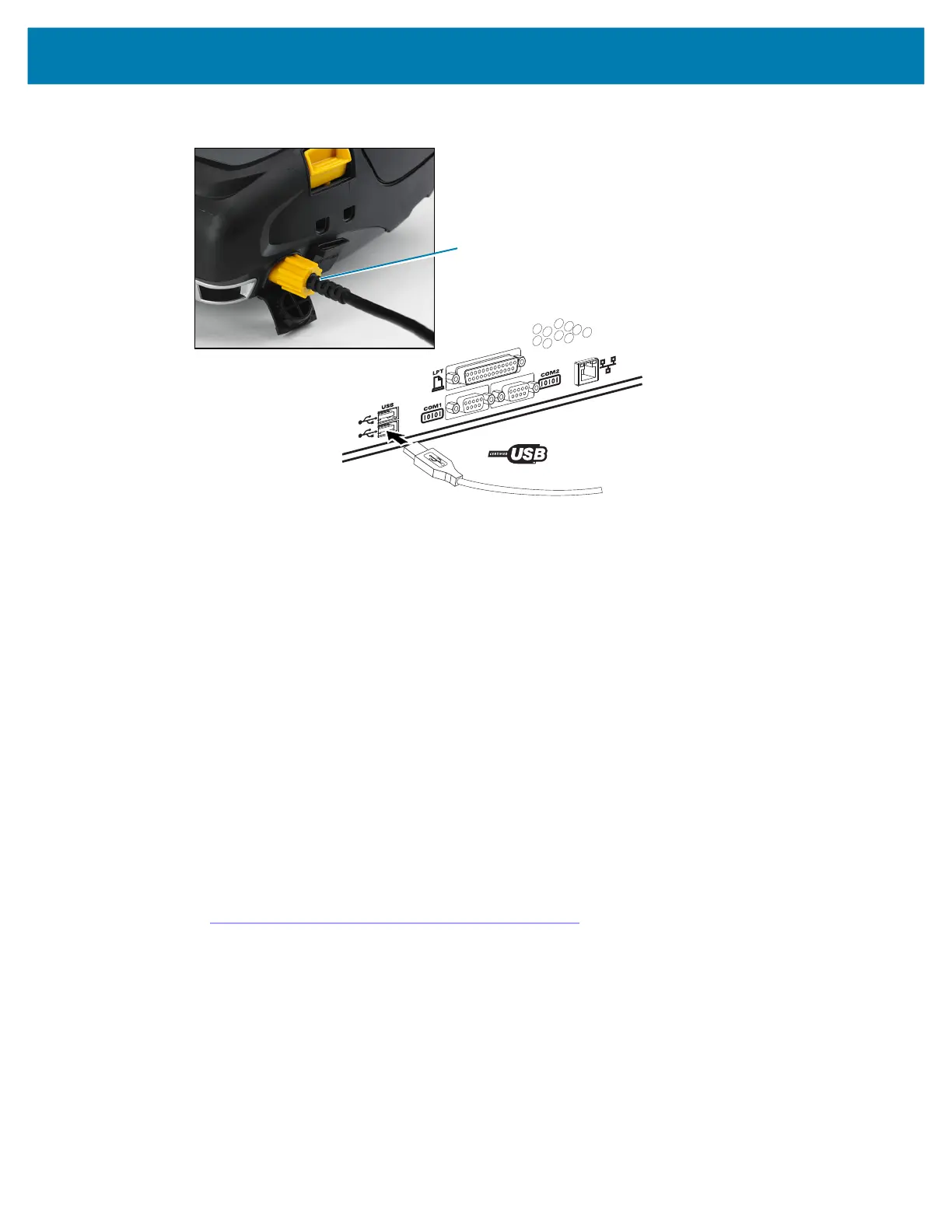 The other end of the cable plugs into the USB port on a computer as shown in Figure 24. The printers are