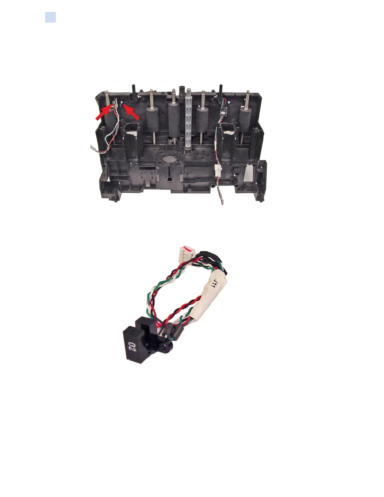 Step 1. With a TORX T8 driver, remove the two screws holding the Exit Sensor in