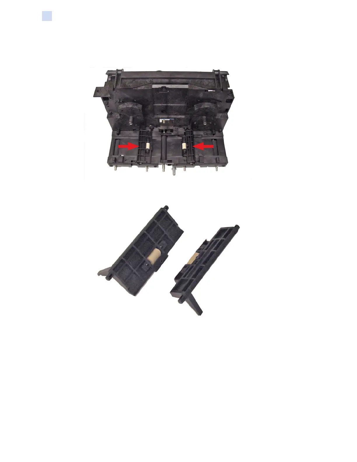 Step 1. Lift the two Pinch Rollers (arrows below) up and out of the Frame.