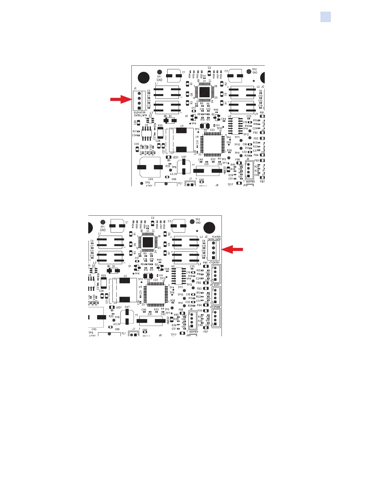 Step 6. Disconnect the platen motor control/power cable from J2 on the PCBA.