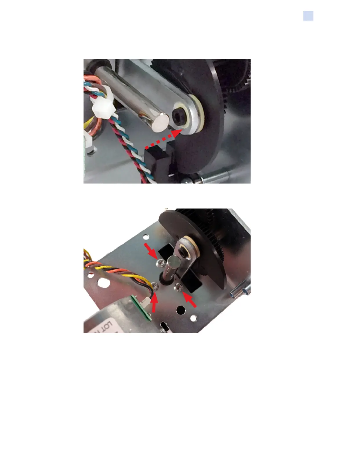 Step 14. Insert the flanged bearing and elevator connecting rod onto the lift cam