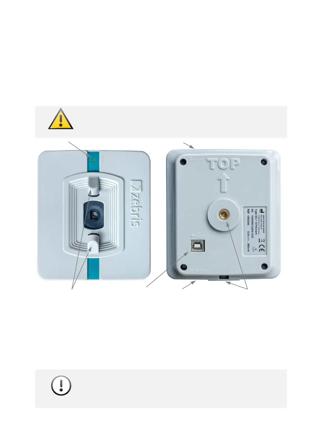 The camera is equipped with ¼ inch tripod threads and can be adapted to zebris tripods as