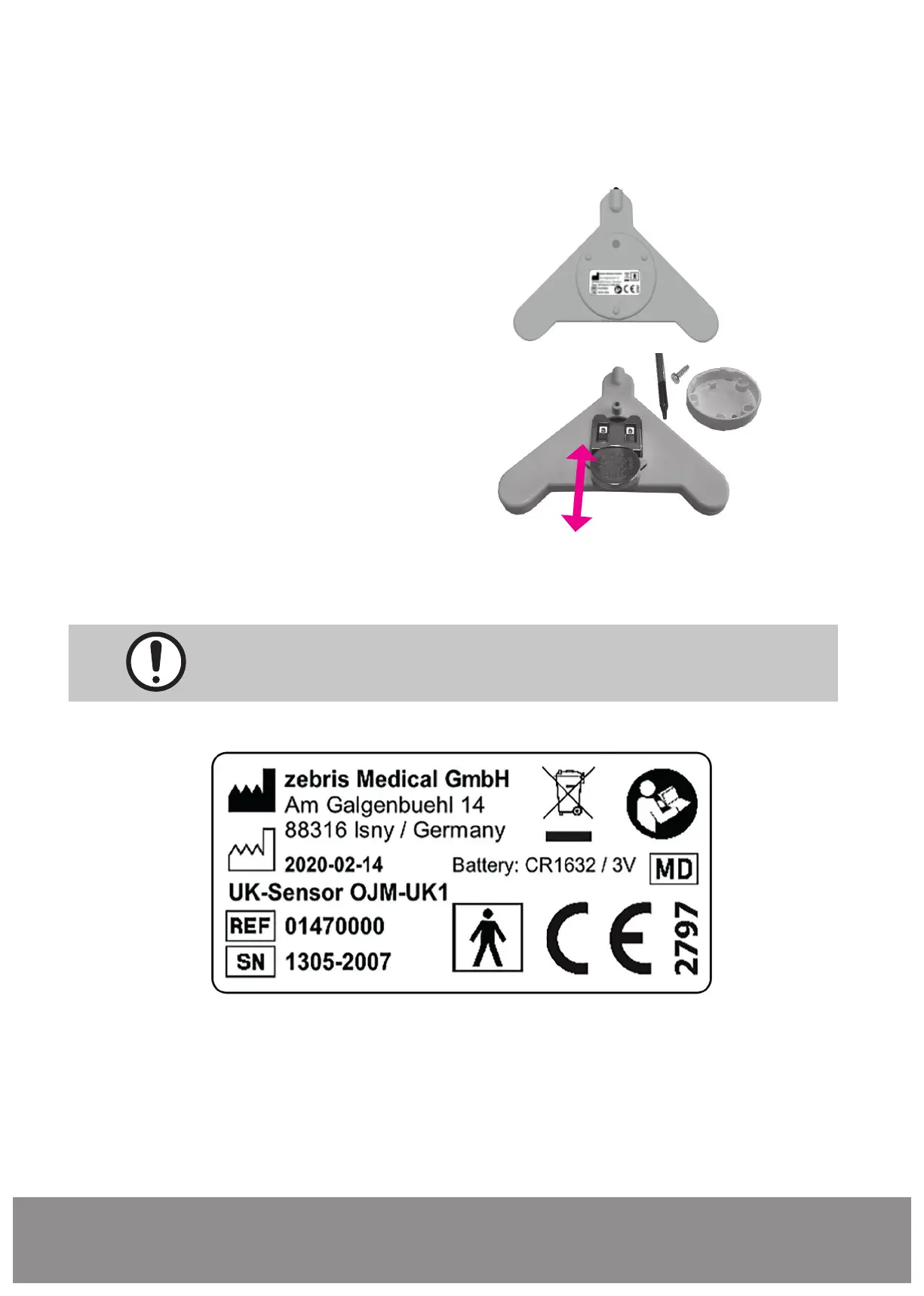 To replace the battery of the lower jaw sensor, proceed as follows: