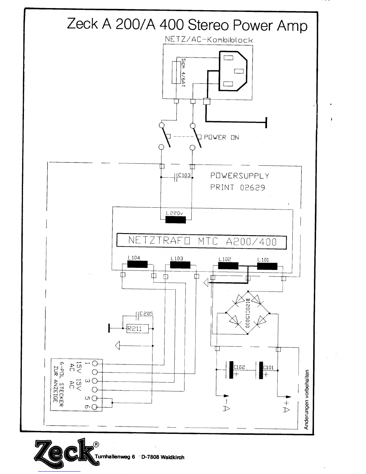 Zeck Audio A200 - Power Supply Section; AC Input and Power Supply Schematic