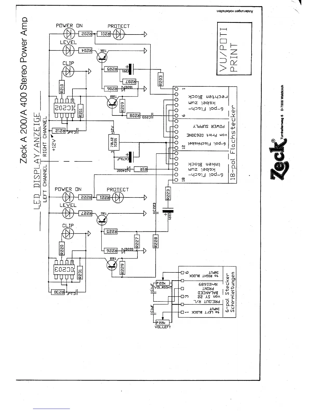 Zeck Audio A200 - Indicator and Display Systems; LED Indicators and VU Meter Circuit