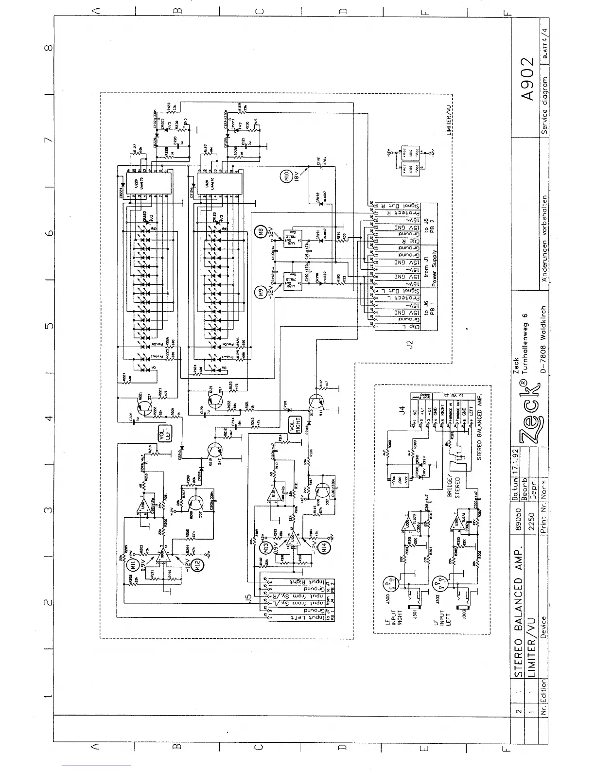 Zeck Audio A902 - Signal Processing and Control; Limiter;VU Meter Circuitry; Stereo Balanced Amp Circuit