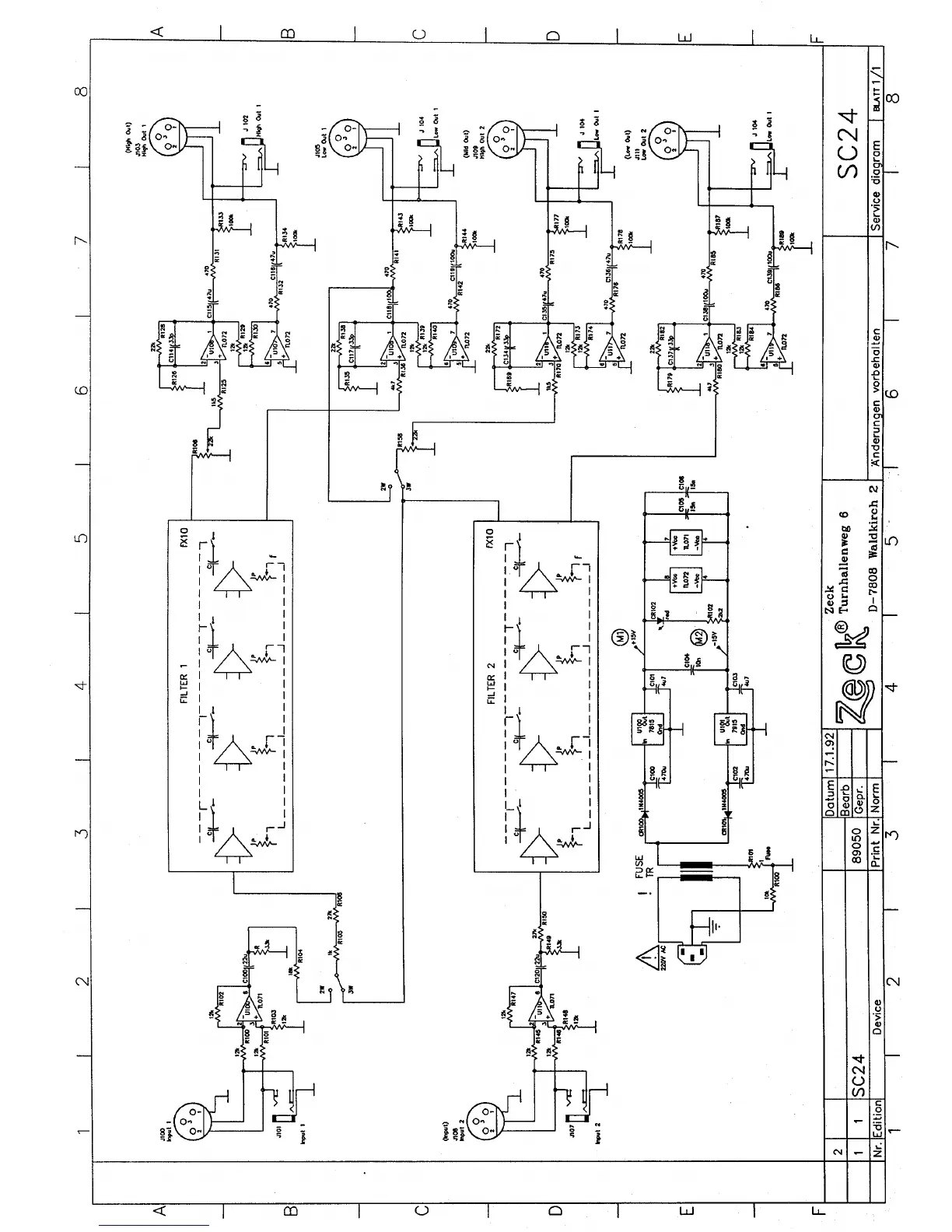 Zeck Audio SC24 - Technical Schematics; Service Diagram