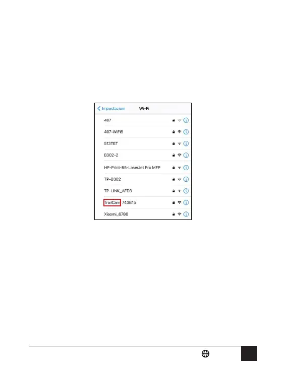 WiFi, seleziona il nome WiFi corrispondente alla fotocamera,