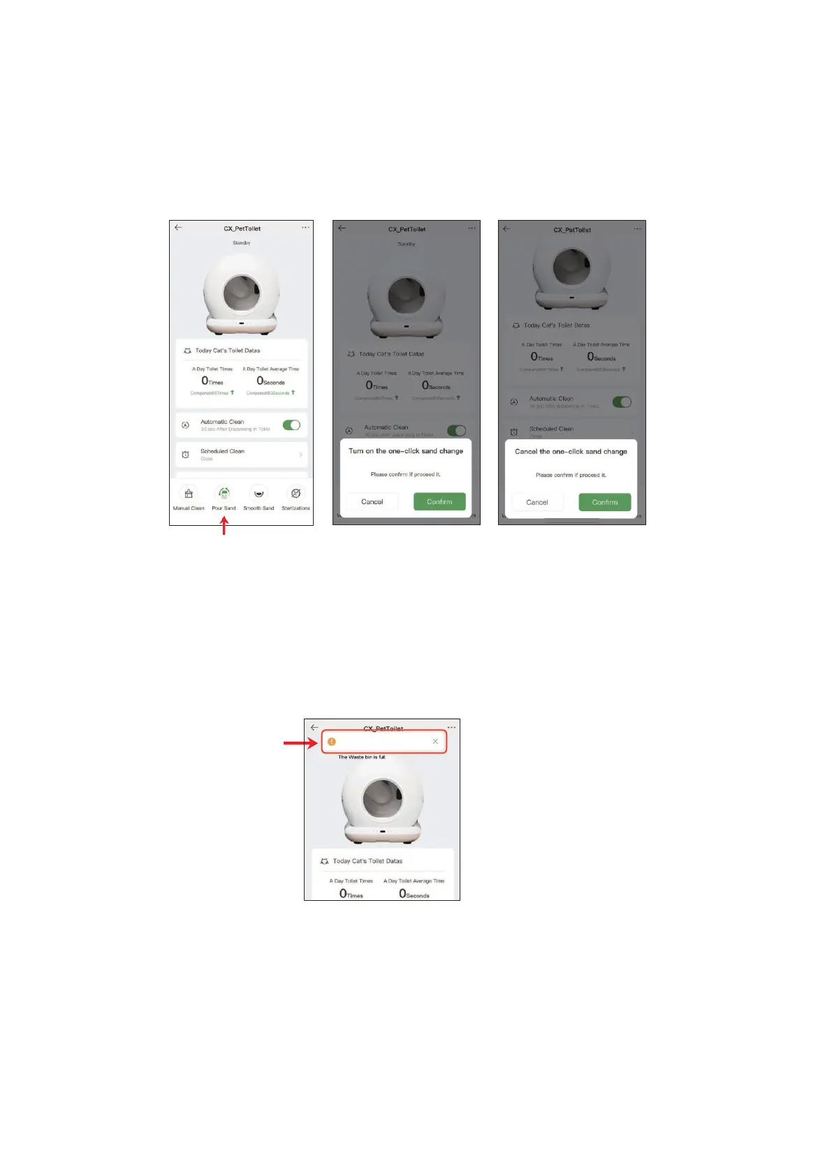 3. Druk op ‘Vat legen’ op het paneel of in de app.