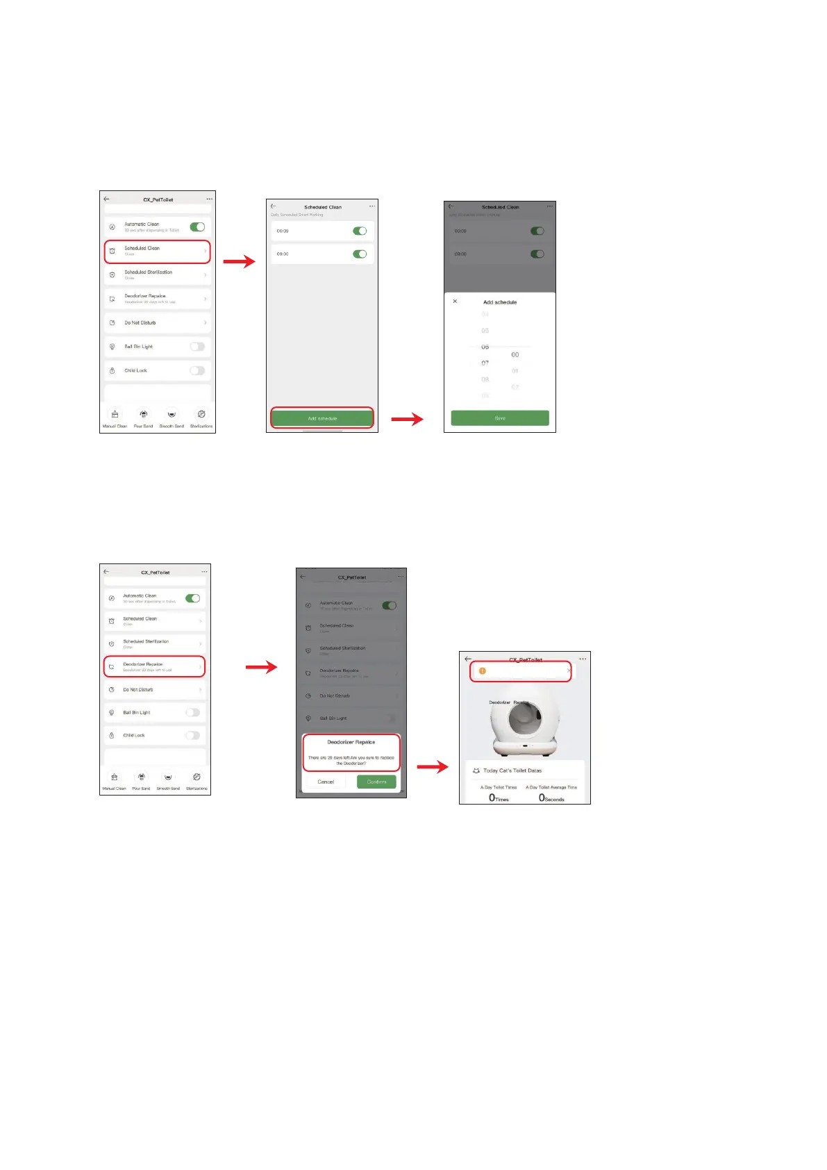 Klik in de app op schema schoonmaken en maak een dagelijks of wekelijks schema.