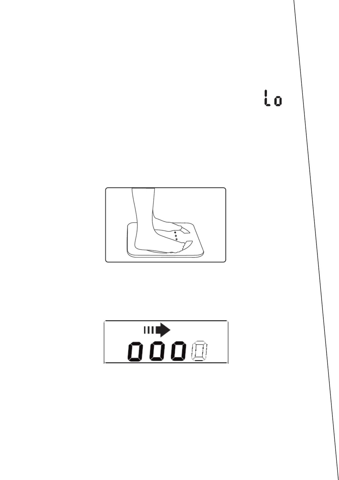 2. Atsistokite ant svarstyklių basomis kojomis.