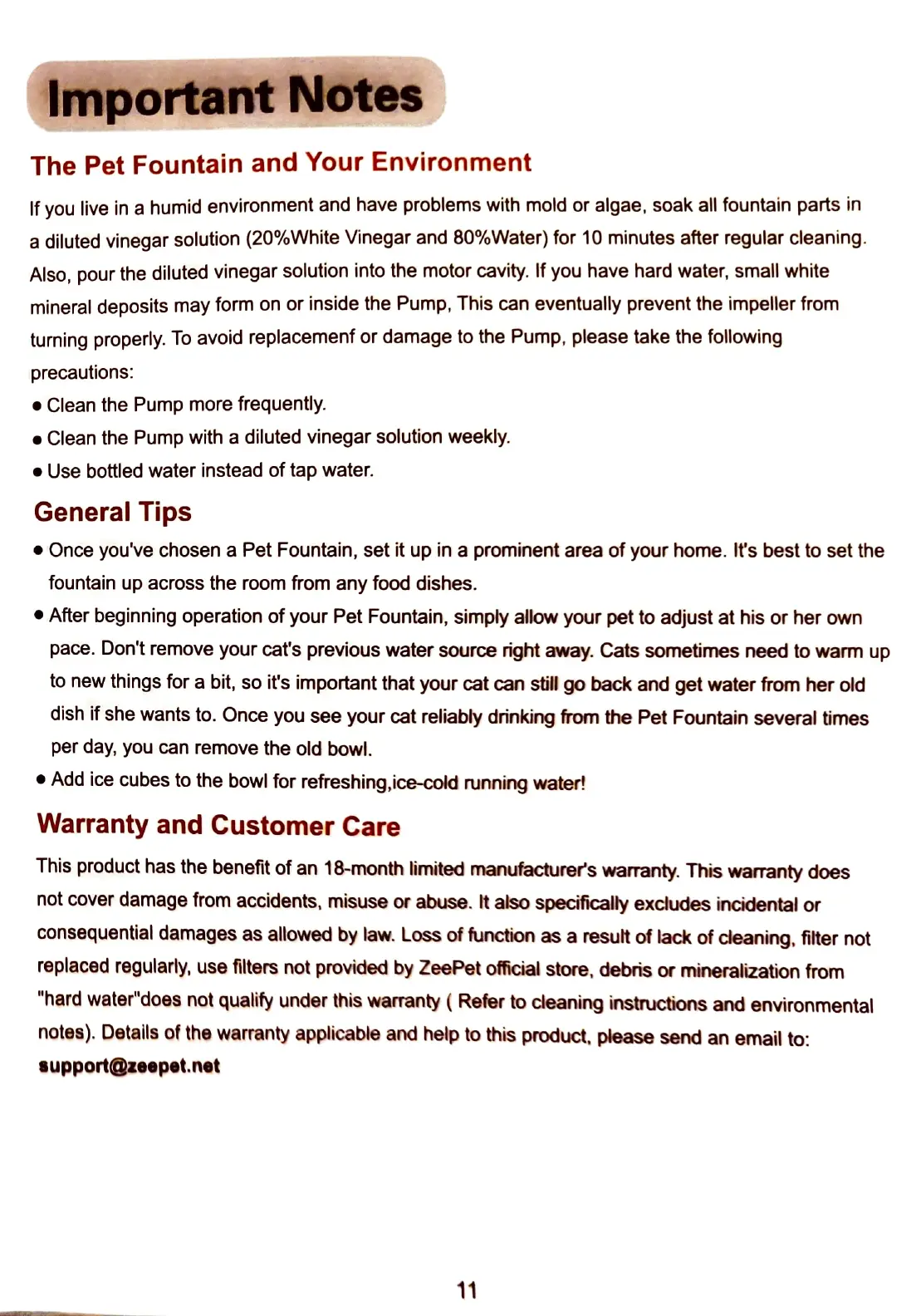 ZeePet D90 - Important Notes; General Tips; Warranty and Customer Care