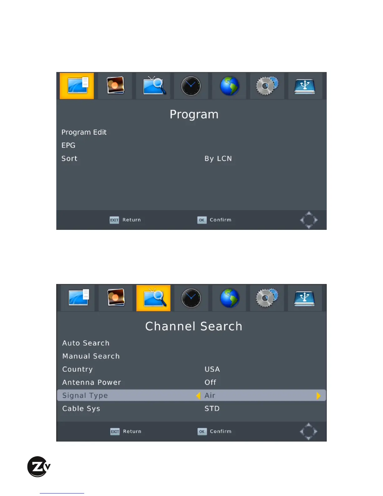 ! Use the RIGHT arrow key (VOL+) to navigate to the “Channel Search”