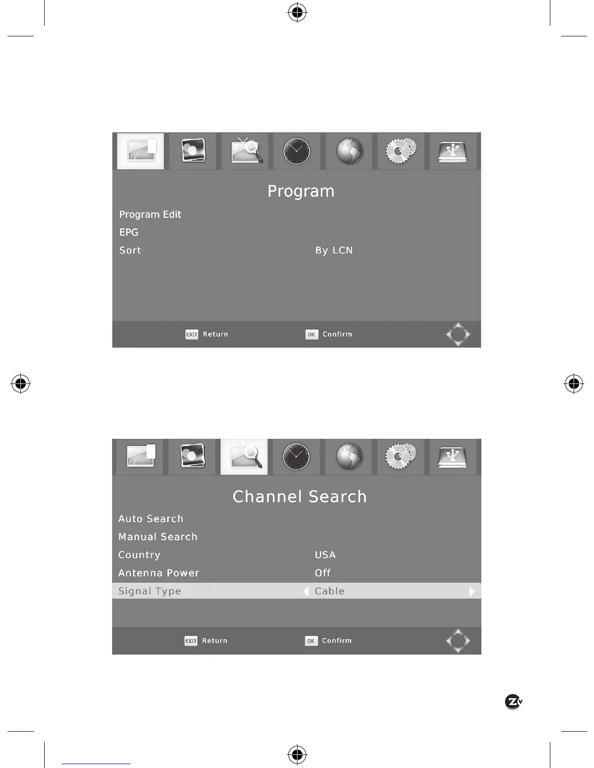 Use the RIGHT arrow key to Navigate to the “Channel Search page