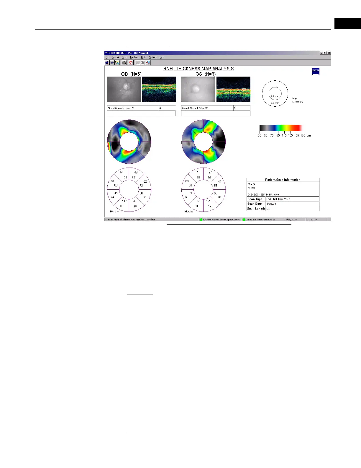 Figure 6-12 RNFL Thickness Map Analysis Output