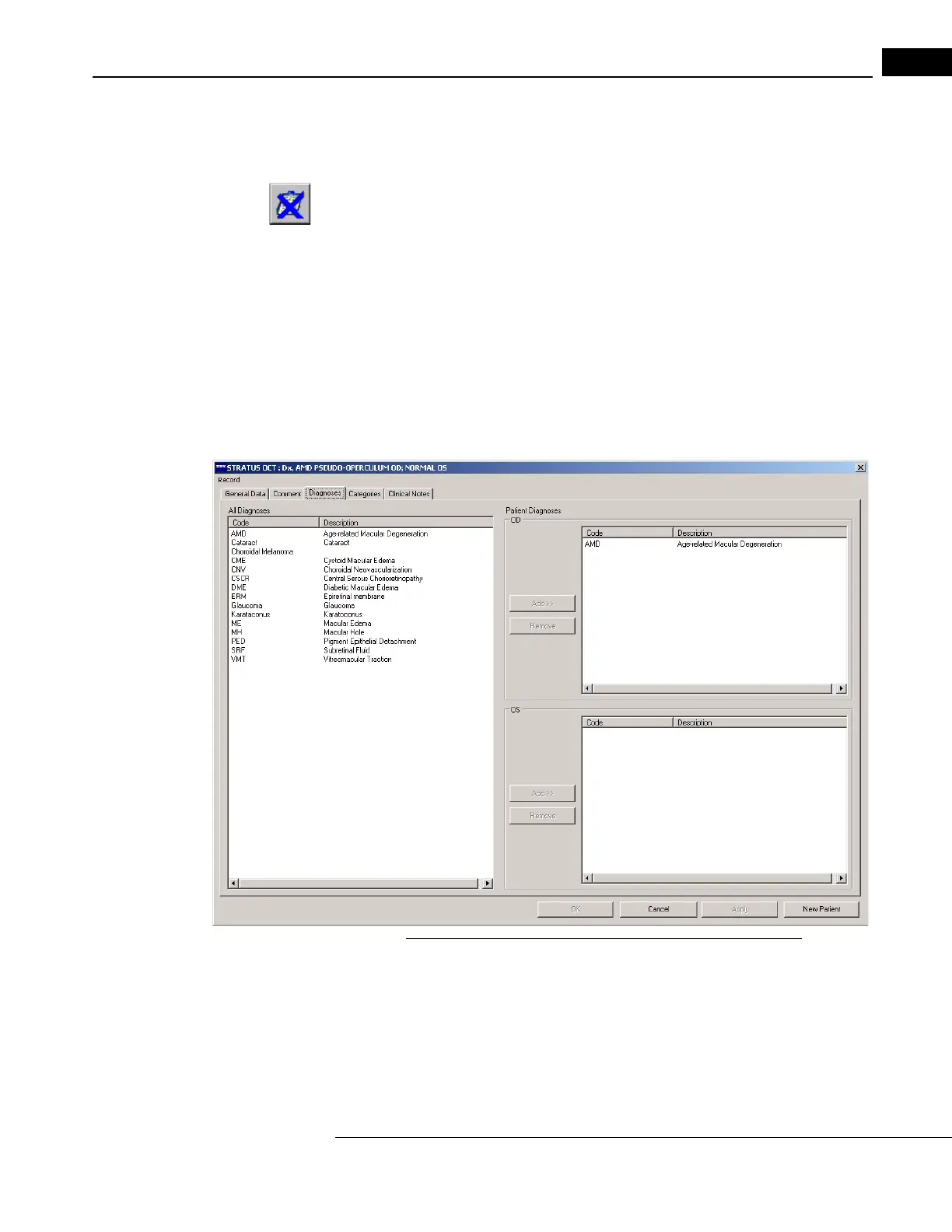 Figure 7-10 The Diagnoses Tab of the Patient Record Window