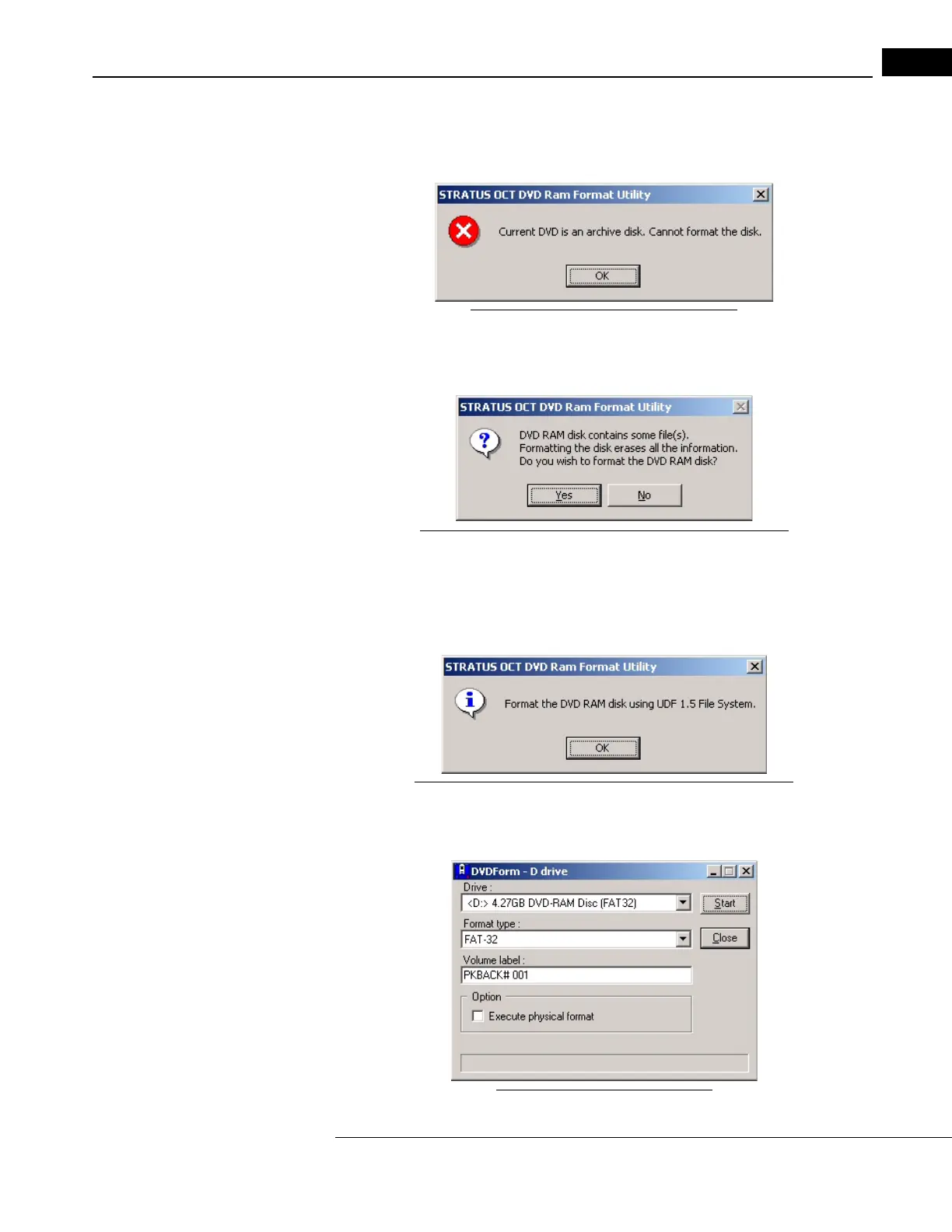 • Click OK to close the dialog and proceed with formatting. The DVDForm dialog