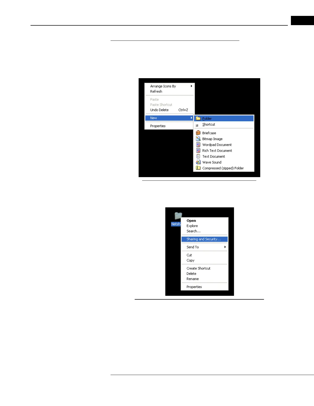 Figure B-7 Right-click on desktop, select New > Folder