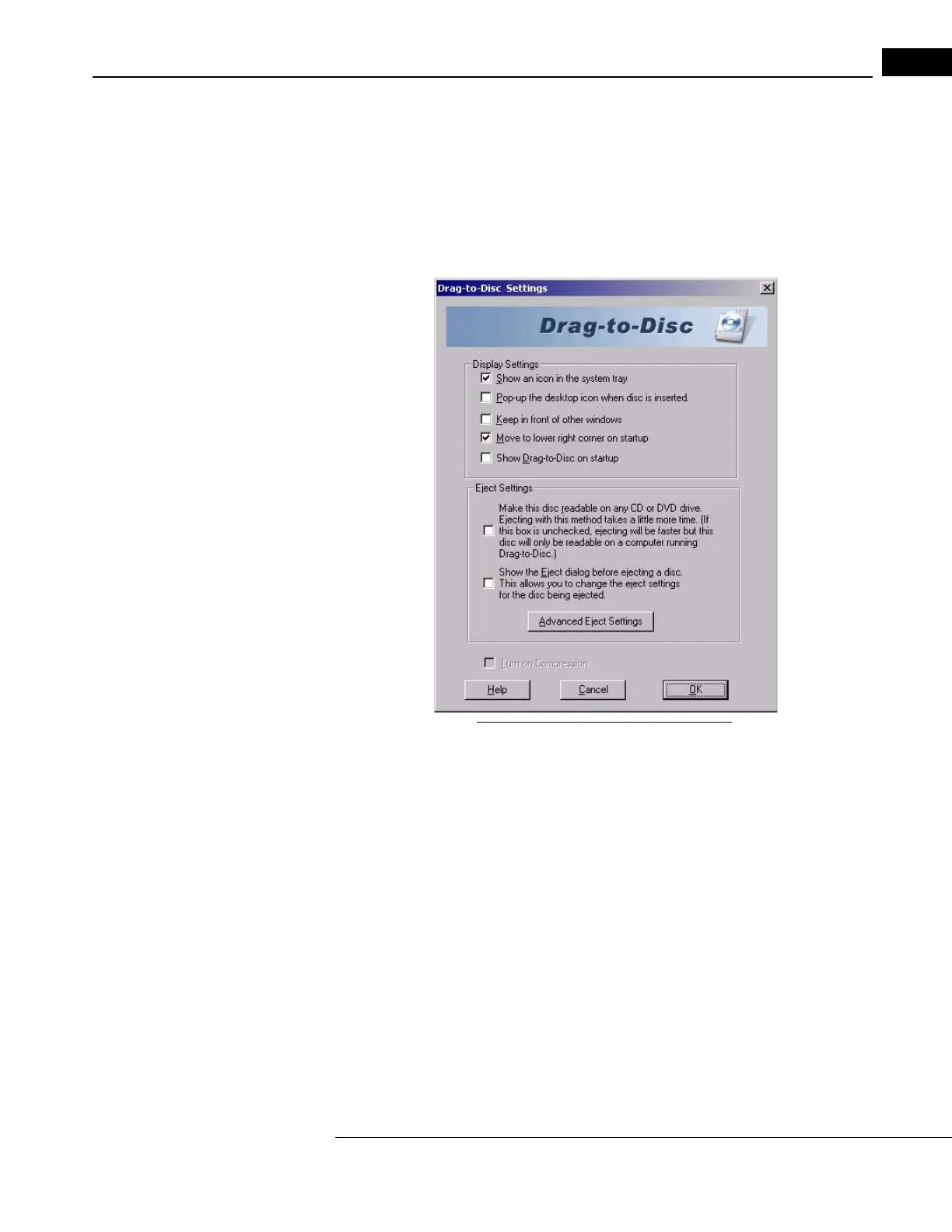 eject, as in Figure D-6. These are not the default settings when you install Roxio yourself.