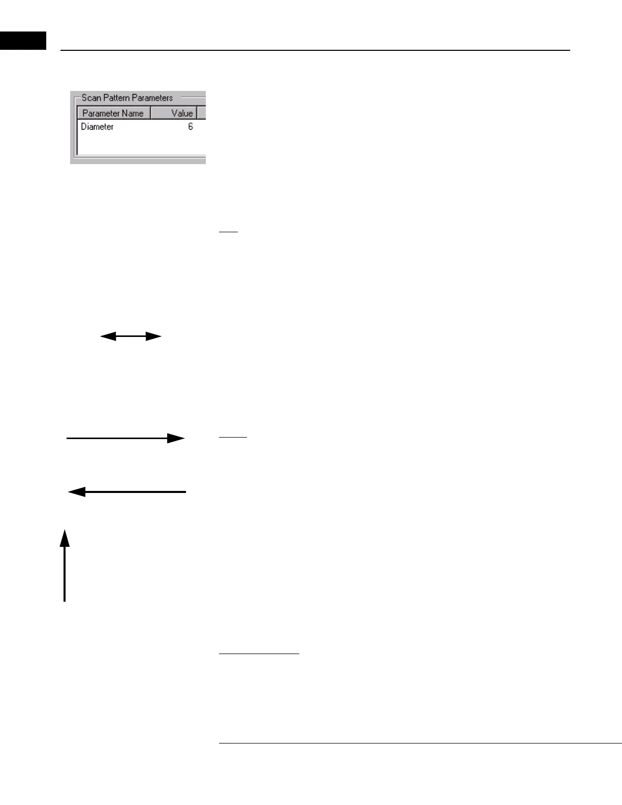The Scan Pattern Parameter area (pictured at left) is found in the upper left of the Scan
