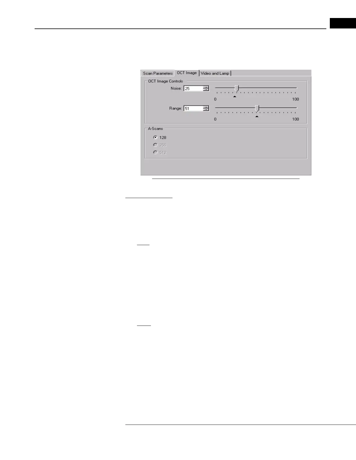 T Image Tab on the SCAN ACQUISITION WINDOW to adjust OCT image noise