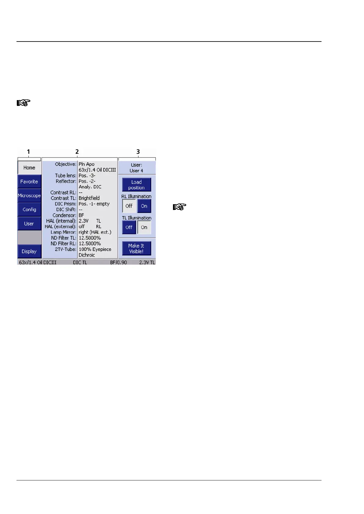 Microscope, Config, User and Display buttons to change the button assignment on the navigation