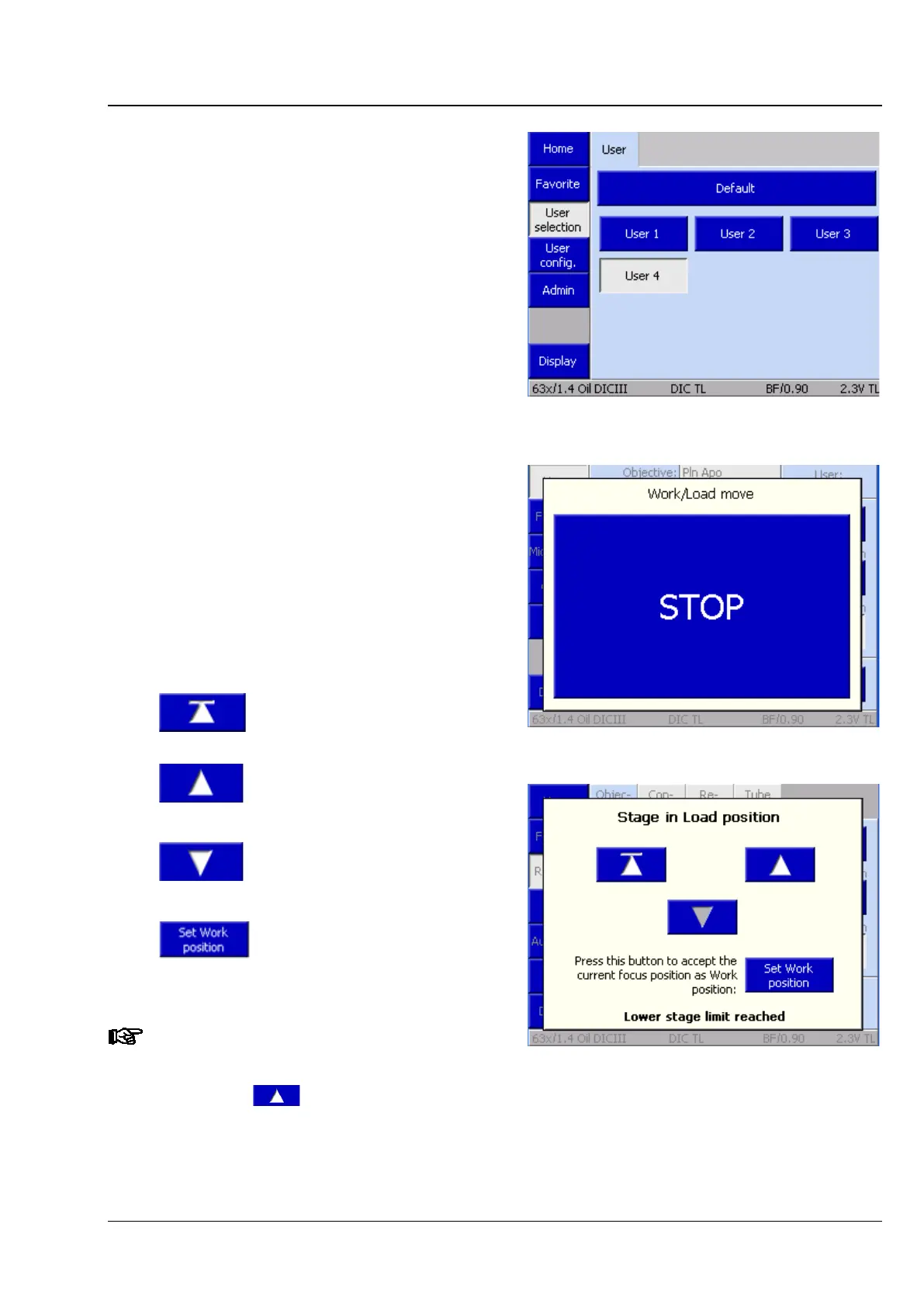 Operating the motorized microscope via the touchscreen of the TFT display