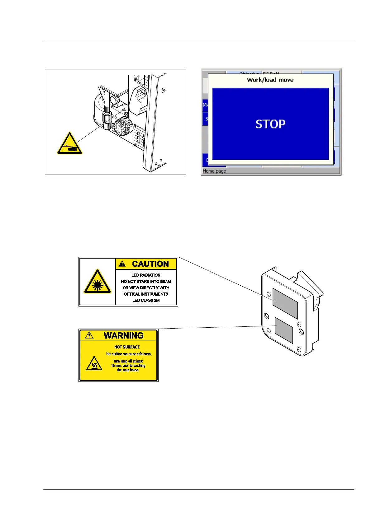 Fig. 3 Warning labels on the underside of the LED illuminator