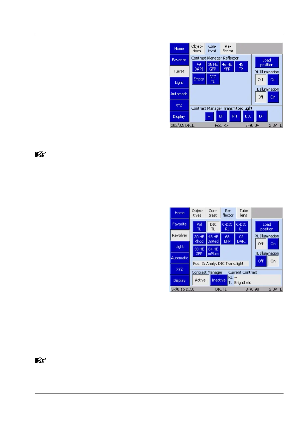 If an invalid reflector position is selected while the contrast manager is active, the system will travel to the