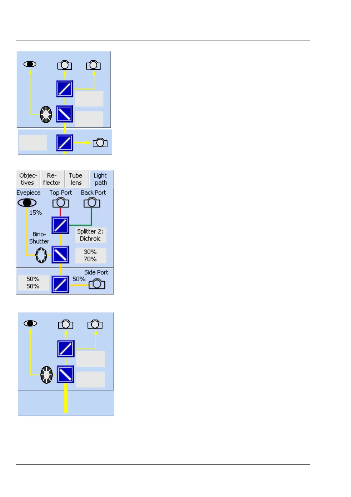 Three mirrors (deflection plane, eyepieces, Top Port/Back Port)