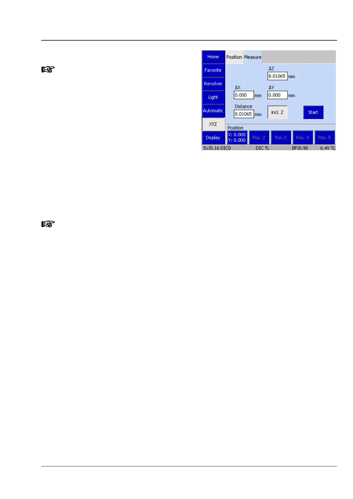 • Press the Start button. The display fields ∆X, ∆Y and ∆Z are set to zero.