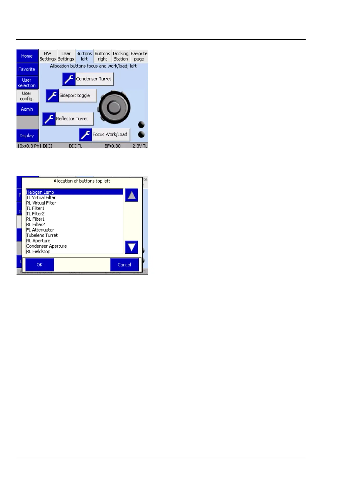Operating the motorized microscope via the touchscreen of the TFT display