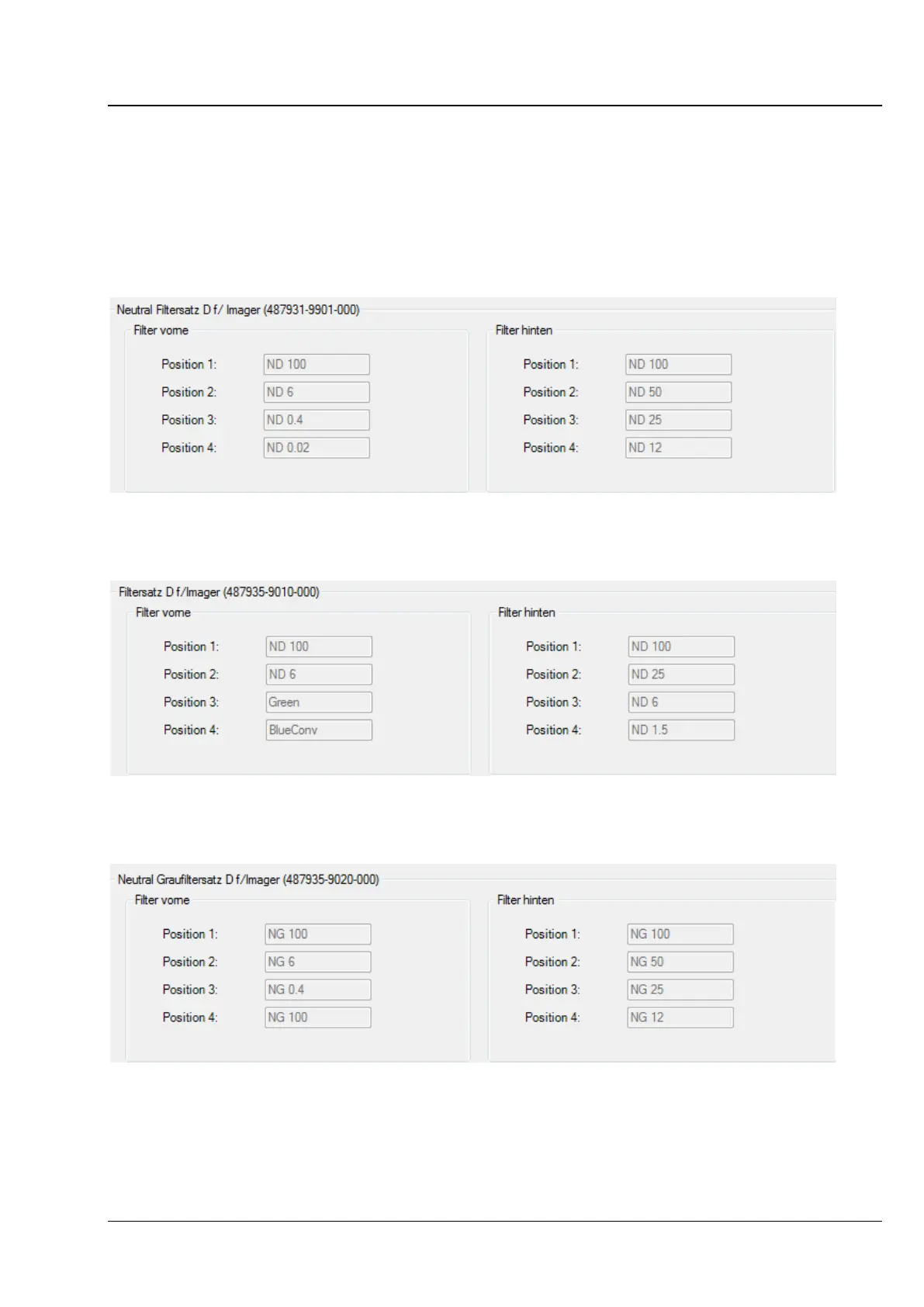 c. 487935-9020-000 – This gray filter set consists of colored neutral gray lenses. In contrast to the first
