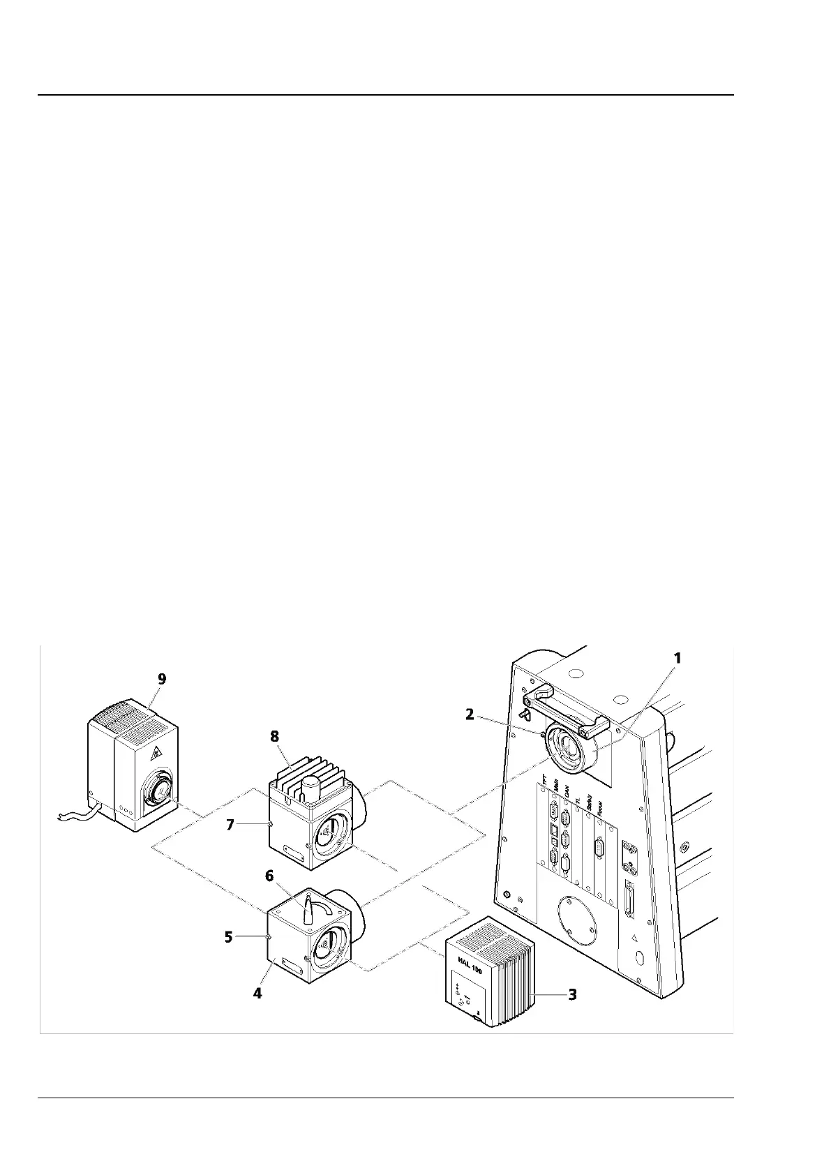 Remove the protective caps and attach the two illuminators, e.g. HAL 100 (Fig. 57/3) and HBO 100