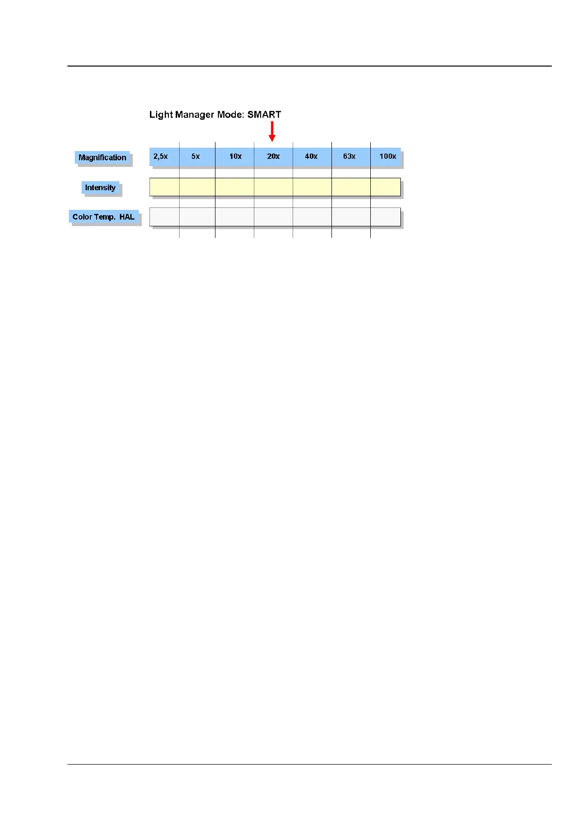 In SMART mode, the Light Manager automatically calculates the optimum brightness for all objectives