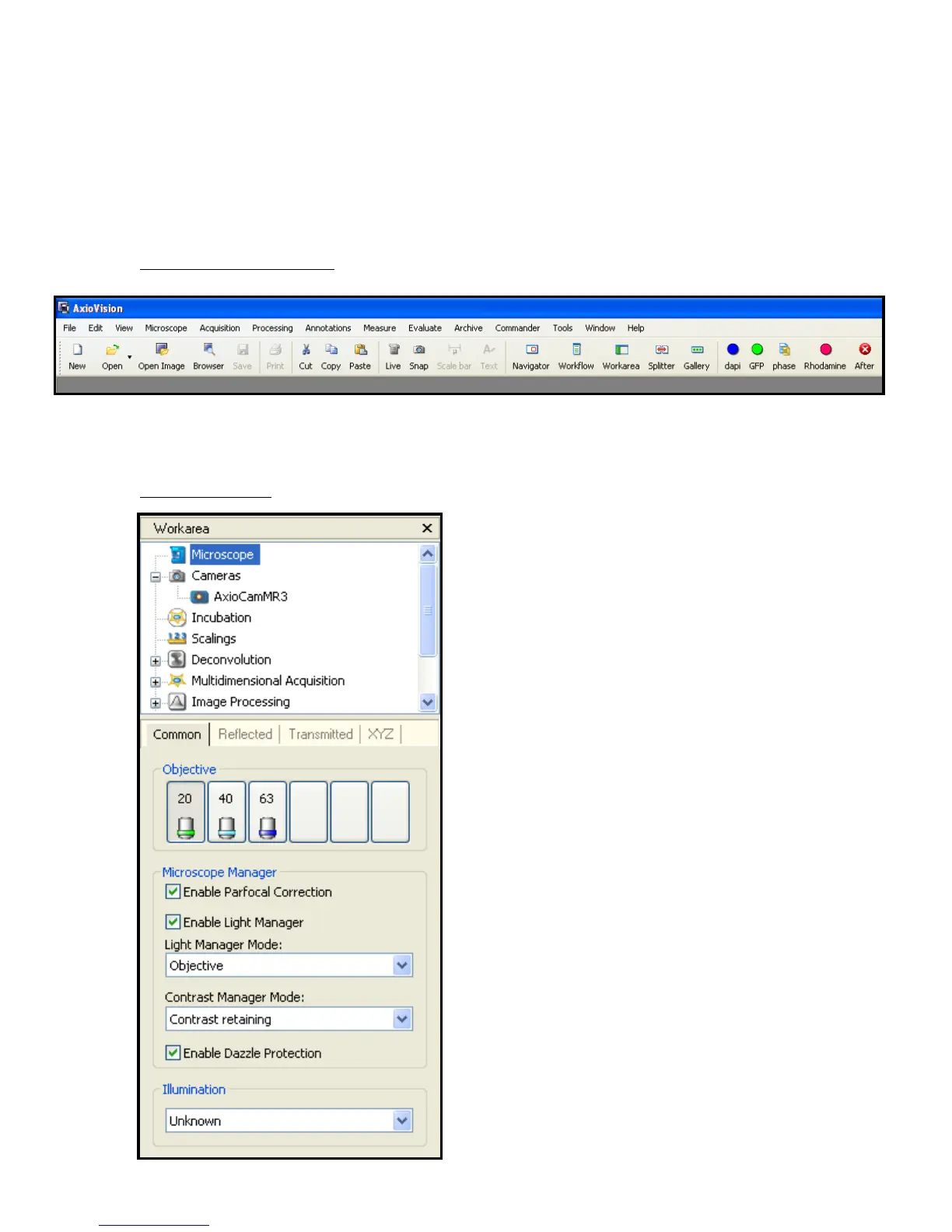 Fig 4 – Axiovision Tool Bar