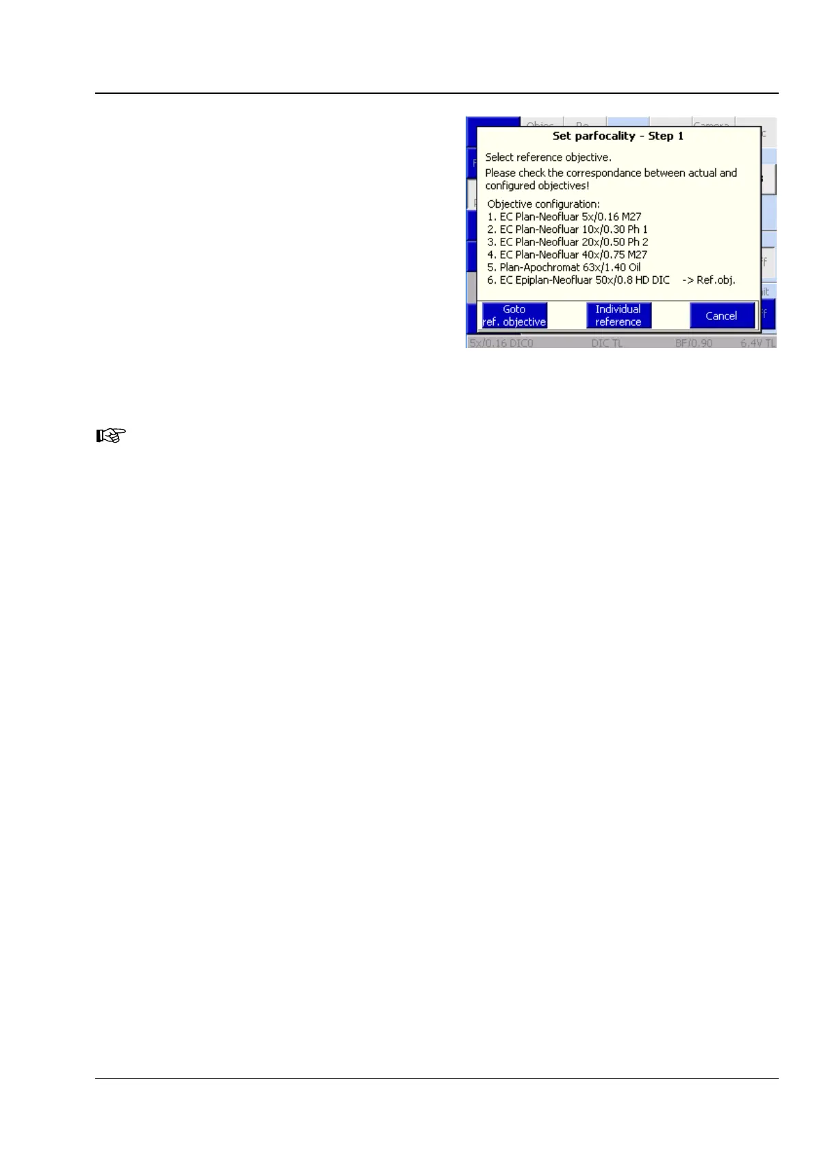 • Swivel in the reference objective. This is usually the objective with the highest magnification